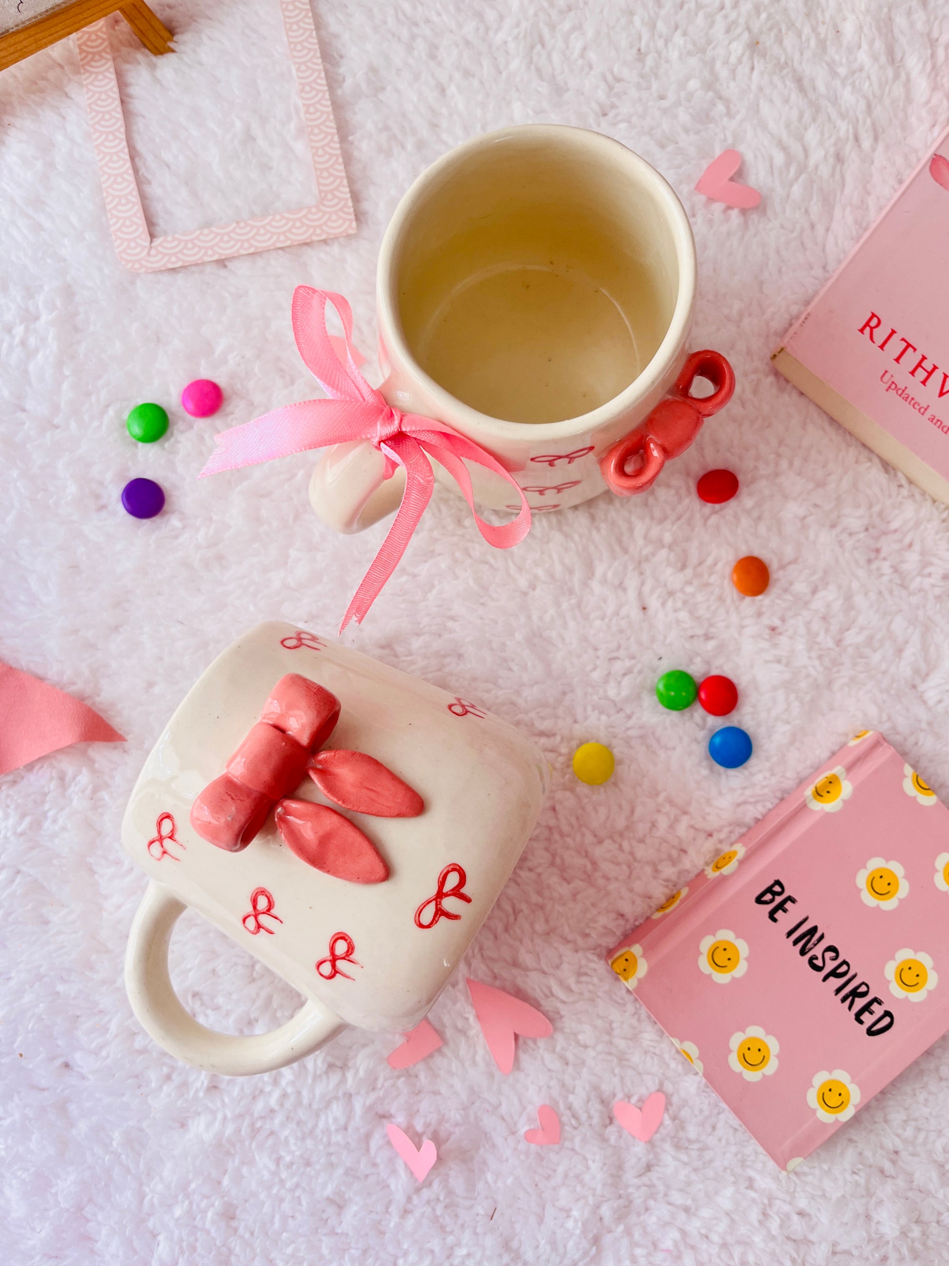 Pink Bow - Handmade Ceramic Coffee Mug