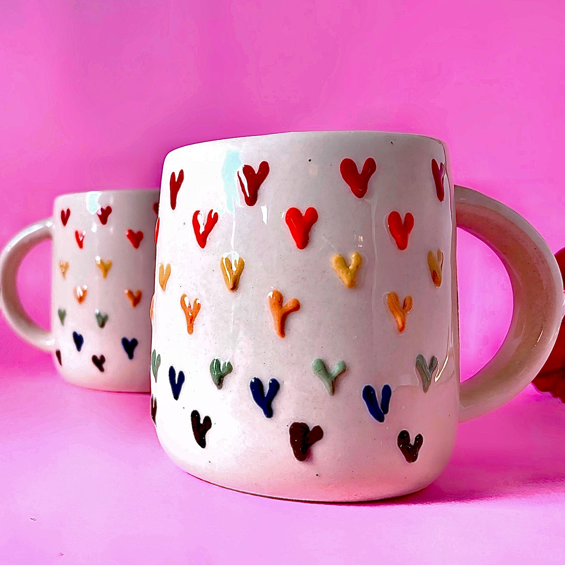 Product Description: Sip in style with our handcrafted The Heartbeat Mug—a cheerful blend of love and color! Featuring adorable 3D heart patterns in vibrant shades on a creamy ceramic base, this mug adds a playful charm to your daily coffee or tea time. A perfect gift for loved ones or a bright addition to your own collection.